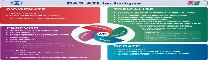Ahmad, I. , El‐Boghdadly, K. , Bhagrath, R. , Hodzovic, I. , McNarry, A. F., Mir, F. , O’Sullivan, E. P., Patel, A. , Stacey, M. and Vaughan, D. (2019), Difficult Airway Society guidelines for awake tracheal intubation (ATI) in adults. Anaesthesia. doi:10.1111/anae.14904